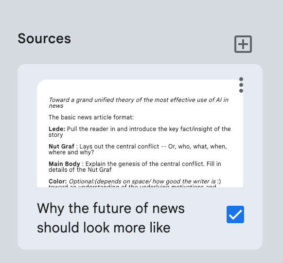 So, not there yet. But! A lot of potential, and a strong opinion about how the UI should operate. Those are good signs. NotebookLM has the chance to become a phenomenally useful tool if Google can expand the notion of a “source” and allow me to begin organizing my thoughts directly in the main viewer before I ever export it into docs.
