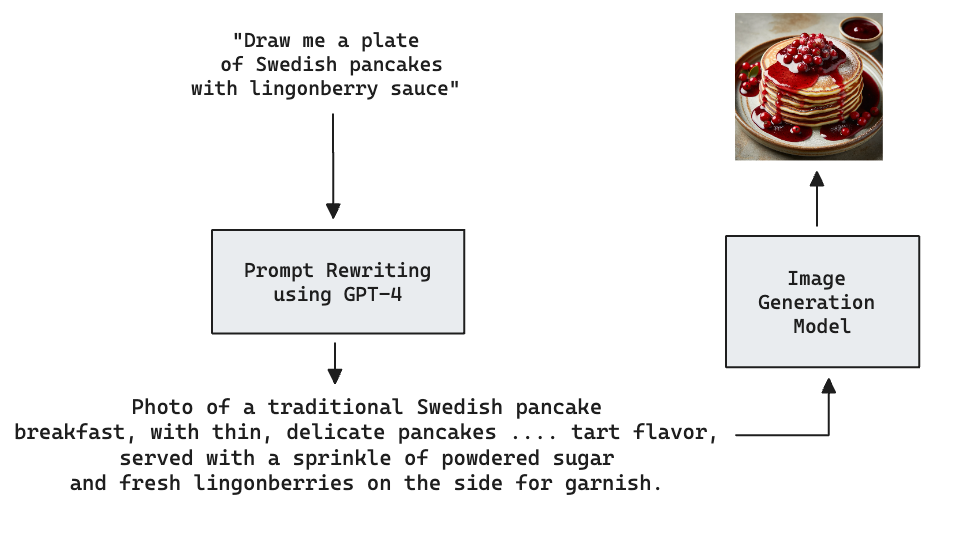 We’ve already dug into the GPT-4 model they use to rewrite the prompts; that’s a large language model (LLM) that takes a text prompt and outputs a text response. I asked GPT-4 to tell me about Swedish pancakes, and it gave me a friendly, accurate response. So that’s not the problem.
