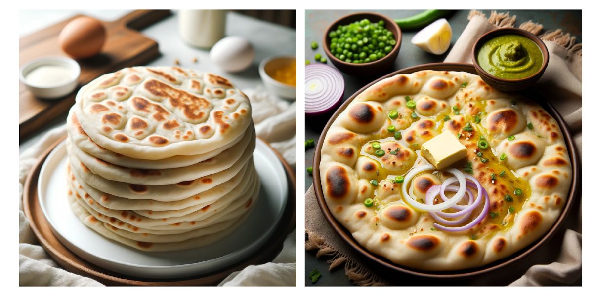 I suspect that some of my prompts were rewritten to add language that pushed the image model toward drawing American pancakes. My request for roti and crepes were rewritten to be a “stack of roti bread” and a “stack of freshly made French crepes” respectively. And “naan” was replaced with “butter naan,” which is a style of naan, but perhaps too subtle a distinction for the model to understand. Sure enough, when I wrote my own long, detailed prompts without references to “stacks” or “butter,” I got back much more accurate representations of the bread.
