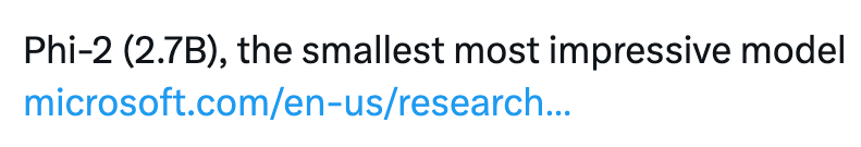 In comparison, Phi-2 is roughly 5 GB and has only 2.7 billion parameters. The larger language models are still more powerful, but Microsoft claims that Phi-2 is the best model with less than 13 billion parameters. It’s a good model to try if you want to play around with an LLM locally or in Colab. 💥