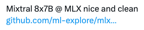 But now you can! Because “Mixtral 8x7B @ MLX” refers to the code that Apple has released to let you do that. 💥
